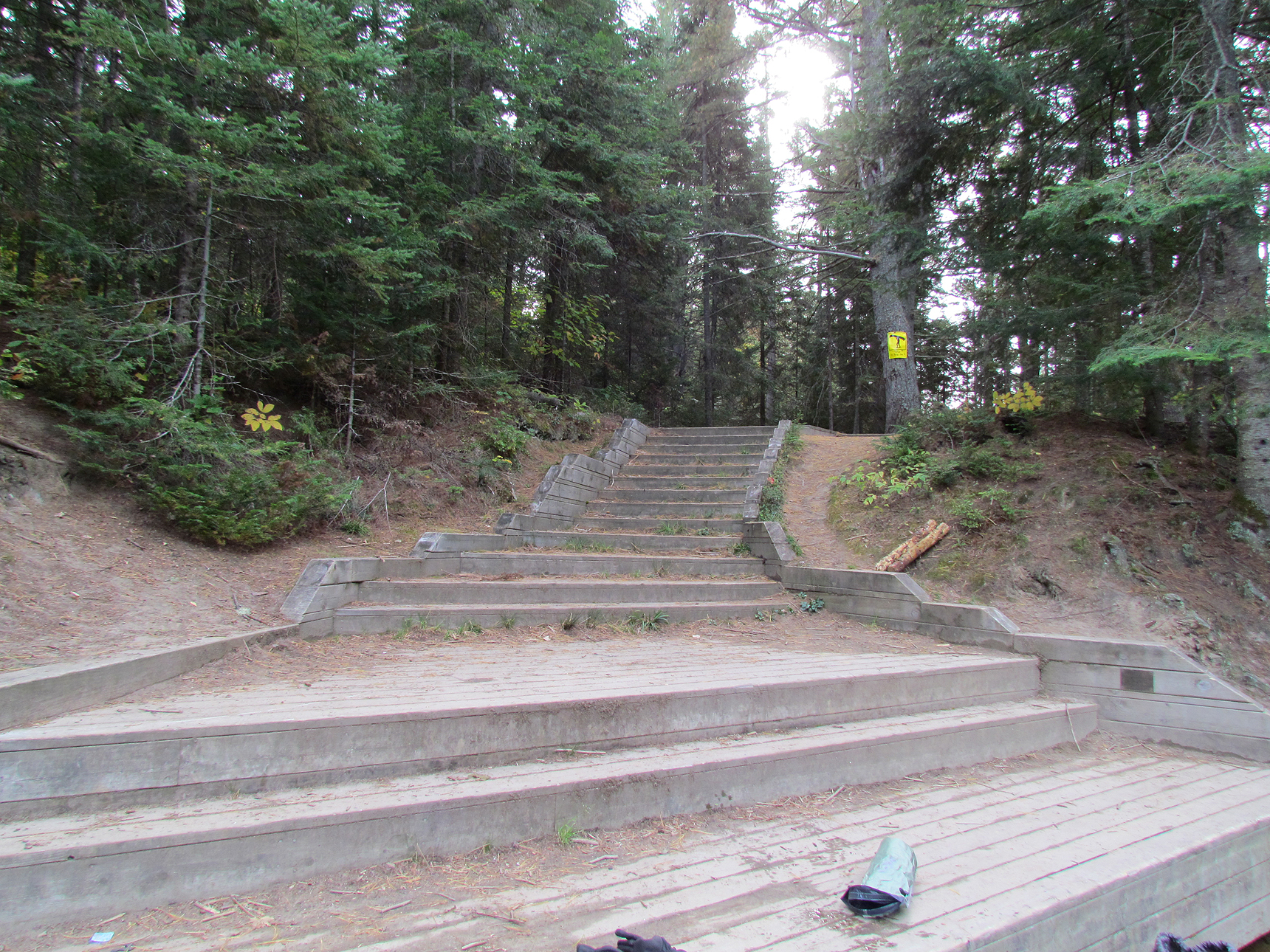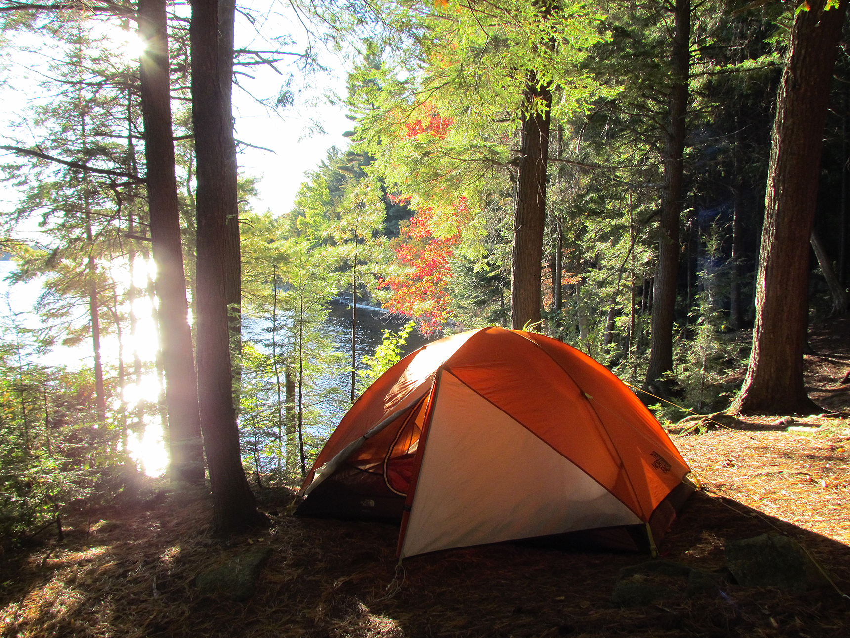 Once we arrived at the launch and loaded up the canoe we entered the crowded restaurant and had a nice lunch. For the remainder of the day we decided to hike a trail and go to our site we booked at the Mew Lake campground. Unfortunately, the park was literally loaded with tourists! The parking lots next to the trails were spilling out onto the road so we didn’t have a chance to even hike a trail. We made the decision to go to Mew Lake to take a shower, set up camp, and hopefully get up early the next day before anyone else hit the trails. When we got to Mew Lake it was beyond packed, and our campsite was pretty horrible with the wind blowing right through it off the lake. There was also an overhanging tree that kept creaking as it swayed back and forth. We looked at each other and decided that maybe we were better off to go back to the cottage on Lake Muskoka (we were already staying there the following week) and so we started to drive back towards Huntsville.