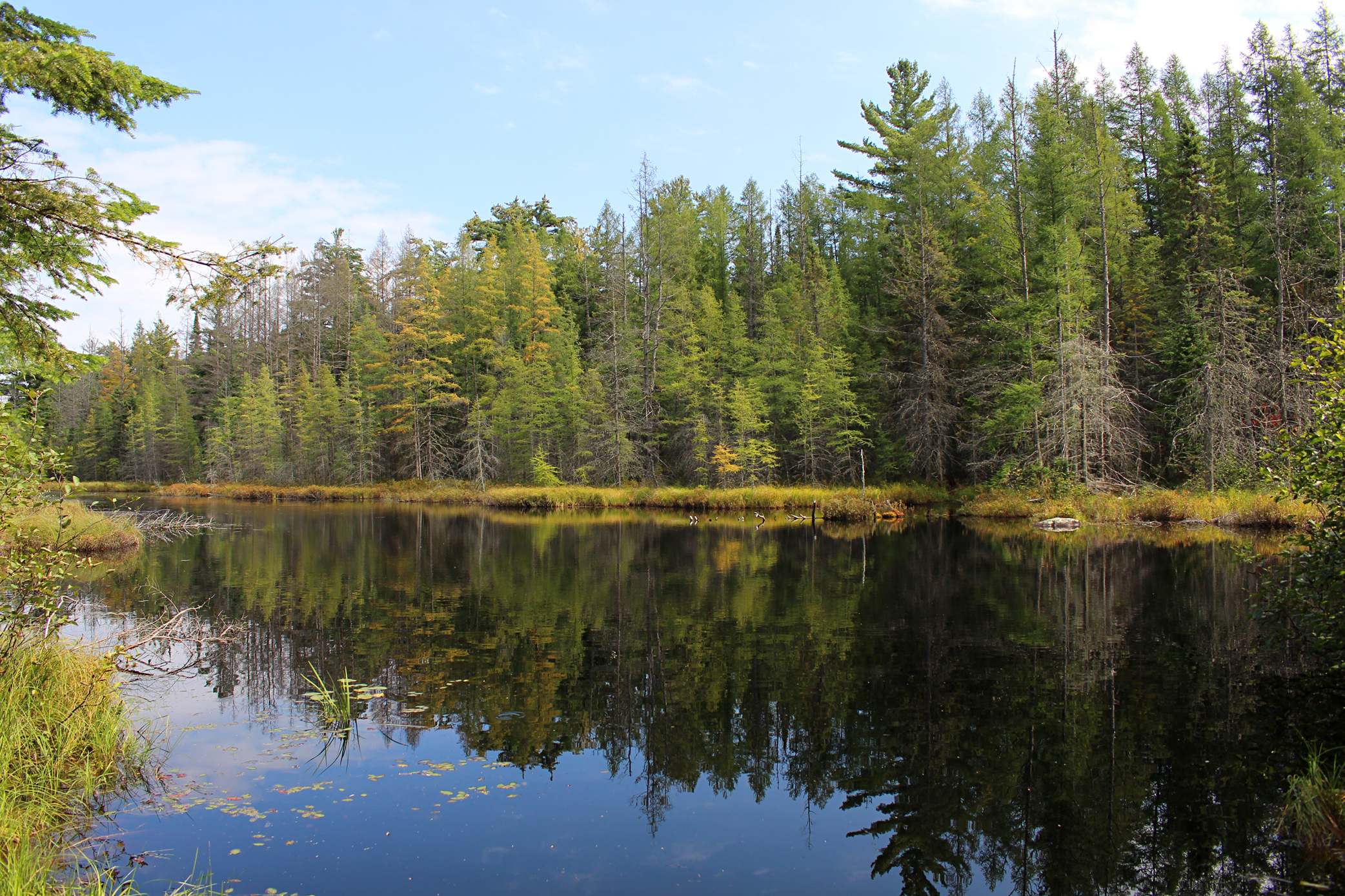Wildlife Sightings: Moose tracks, Common Loon, Common Merganser, Blue Jay, Eastern Chipmunk, Red Squirrel, Garter Snake, American Toad, Bullfrog, Ruffed Grouse, Red-breasted Nuthatch, Black-capped Chickadee, Mosquito, No-see-ums, Palm Warbler, Red Crossbill, Ruby-crowned Kinglet, Golden-crowned Kinglet, Eastern Phoebe, Black-throated Blue Warbler, White-throated Sparrow, People, Black-backed Woodpecker, Belted Kingfisher, Yellow-rumped Warbler, Canada Goose.