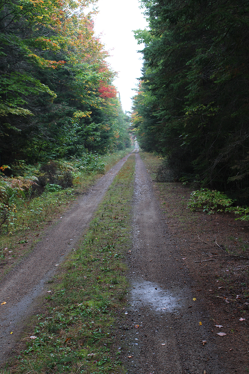 Unless you have some knowledge about the railway, you would never even know it even existed as it now looks like a rough road. We expected it to be more like the abandoned CNR railway that runs through the park’s eastern and northern end that had slag to walk on. When we portaged sections of that abandoned rail we found all sorts of leftovers including rail spikes and an old bucket which used to contain bolts. What we had here in front of us was a nice flat portage. Even with the rain falling it was one of the more drier portages as well.