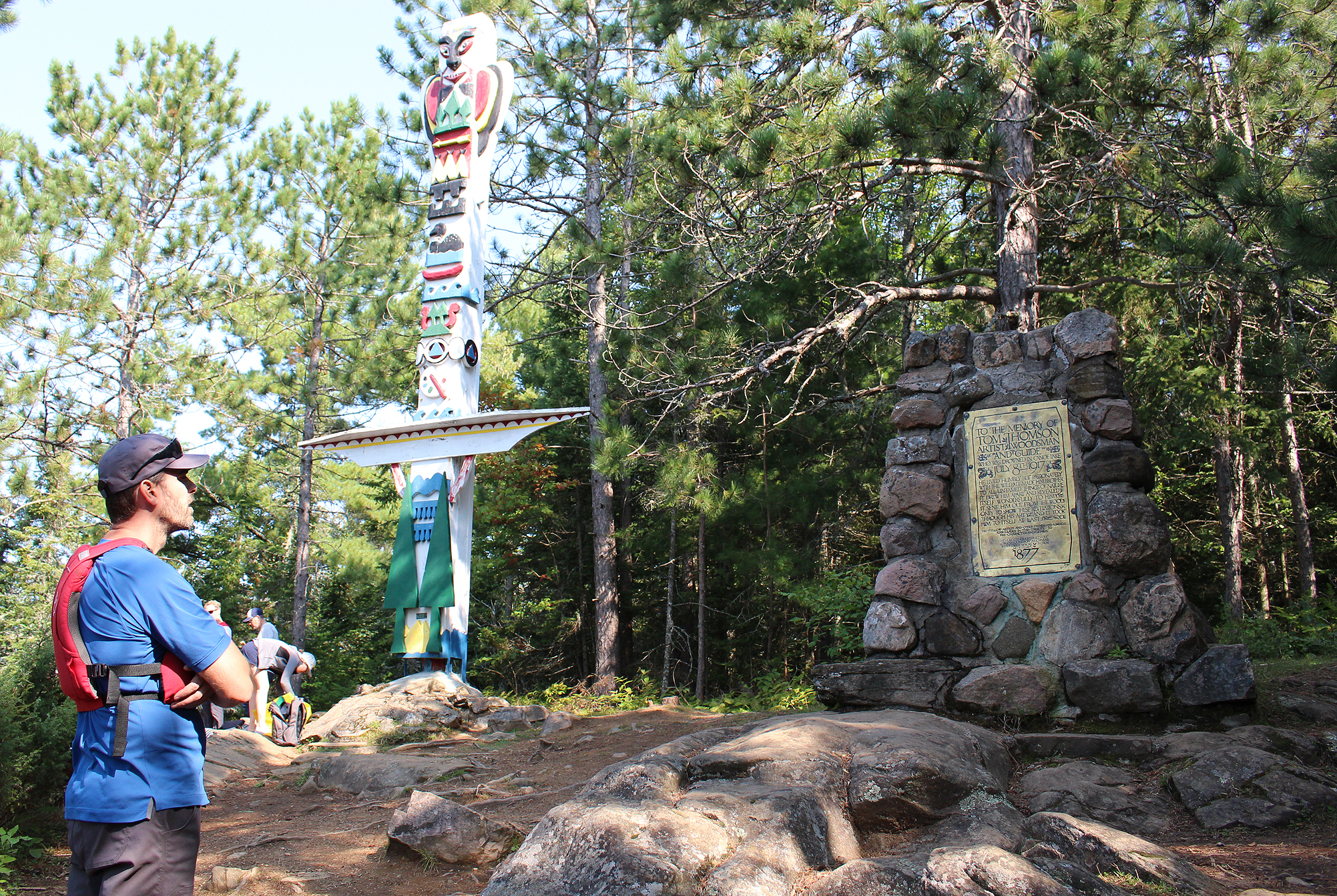 There wasn’t a cloud in the sky today and we were quite happy that the winds remained calm as we paddled across Canoe Lake. 11:00 am seemed to be rush hour on this particular lake as we observed a fleet of canoes head towards us on their way back to the launch. We stopped onshore at the Tom Thomson cairn and totem on the peninsula near the lake’s north end to stretch our legs and have a snack. A hundred years ago this year the famous Canadian painter drowned on Canoe Lake with many conspiracy theories on whether he was murdered or perhaps the experienced canoeist had a tragic accident. Going even deeper into the mystery is where in fact Tom Thomson is currently laid to rest. Two theories currently exist. One is that he is in fact at the cemetery in Leith, Ontario. Another theory is that he still rests at the Mowat Cemetery. Mowat was a former community on the western shore of Canoe Lake where he was initially buried after the tragic accident, though at the family’s request they wanted his remains to be brought to Leith at the family plot. Apparently the grave digger wasn’t licensed and didn’t want to dig him up so the family may have be given a coffin that was filled with rocks etc. Many locals of Mowat at the time claim that the hole dug was by no means deep enough to have dug up the body. The story actually goes even deeper than this that involves individuals who dug up a skull at the Mowat cemetery, and even facial reconstruction based off of photos from that skull, but we’ll leave that up to the reader to dive even deeper into this mystery. One fact that remains true to this day is that some of his paintings from Algonquin Park are the most influential and iconic in all of Canada.