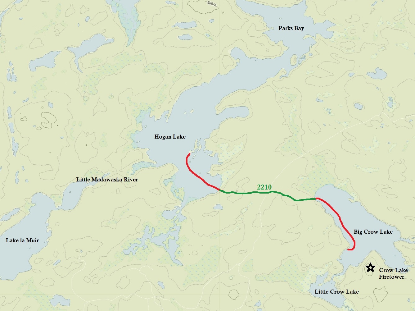 Longest Portage: 3.75 kilometres (Big Crow Lake to Hogan Lake)