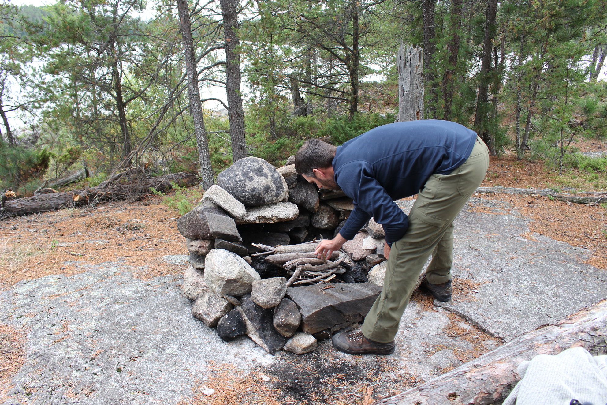 We just chilled around the site today. We moved and rebuilt the fire pit in a more appropriate spot on a bare rock where it looked like it used to be until someone else moved it. We also improved it even further by gathering more rocks to build a back wall. Most of the rocks were close to the lake so we got our daily exercise when we lugged them up to our site from the shore.