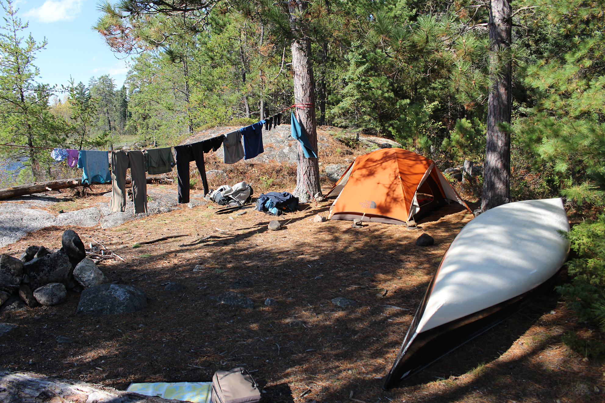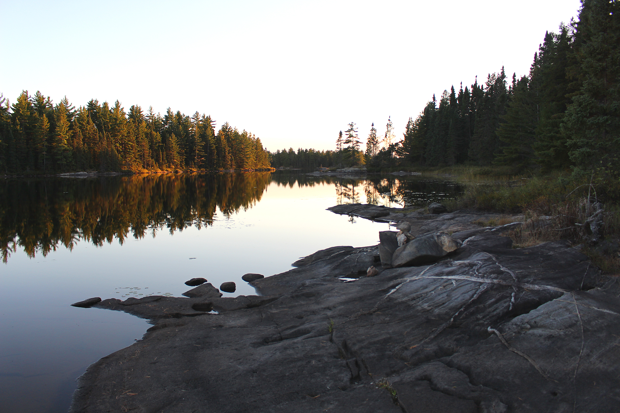 We decided to camp on Jesse Lake with our sights set on an island site. For the first time on this whole entire trip the site that we wanted was actually occupied. We then turned and headed towards the site closest to tomorrow’s portage. This site had smooth rock all away around the water’s edge that made for an easy take out. However, the rocks were incredibly slippery with a layer of organic matter making bathing anywhere really difficult. To pump water to drink we had to go out in the canoe away from the shore as to not clog up the filter.