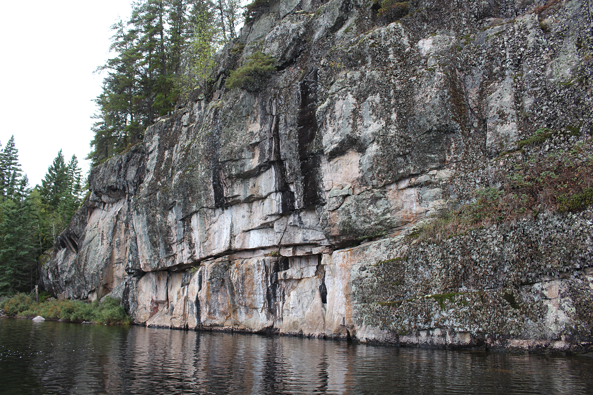 This morning we got up by 5:30 am to get a head start on the day. We were on the water by 7:30 am and made our way to the southern most end of Kahshahpiwi Lake to check out the pictographs along the cliff. Though there was supposed to be two sets of pictographs along this cliff we were only able to locate the one that had an image of a turtle.