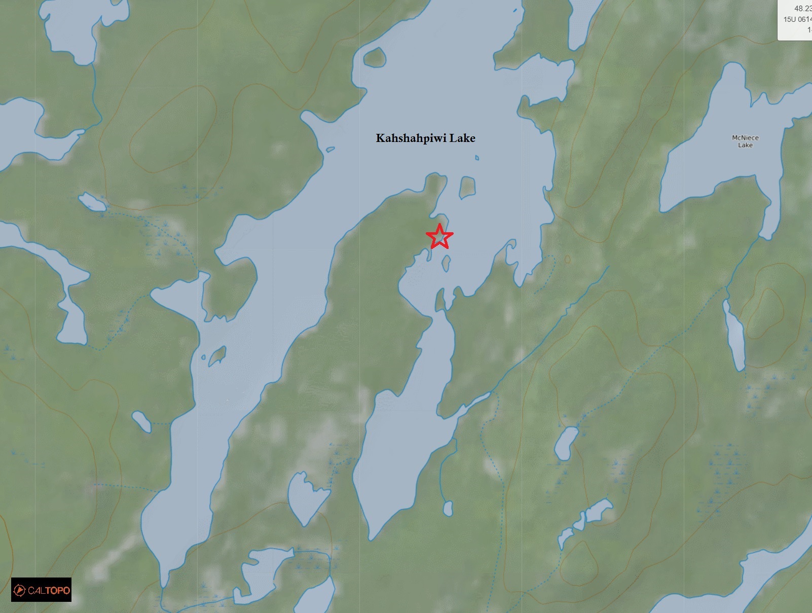 Our last lake of the day was Kahshahpiwi Lake. The name Kahshahpiwi comes from the Ojibwe meaning “the lake that flows continuously” which makes sense as the route paddled and portaged goes right through the Hunter Island area. As we paddled south we could see that there was once a fire along the eastern shore (from we believe 2006) with new growth already filling in the gaps of scorched earth. We also saw an old fire tower far up on the western shore on the opposite side of the lake which is now apparently a communications tower.