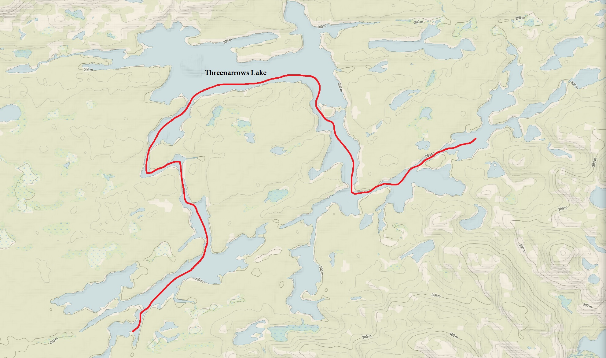 Route: George Lake – Freeland Lake – Killarney Lake – Three Narrows Lake – Artist Lake – Muriel Lake – O.S.A. Lake – Killarney Lake – Freeland Lake – George Lake
